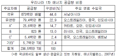 표의 A~C 자원에 대한 설명으로 알맞은 것은?