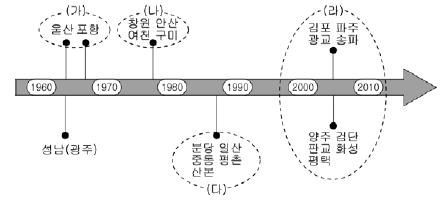 자료는 시도시 건설 연표이다. (가)~(라) 도시군을 분석한 내용으로 알맞지 않은 것은?