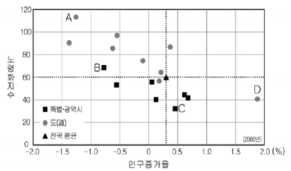 그래프의 A~D에 해당하는 지역을 알맞게 연결한 것은?[3점]