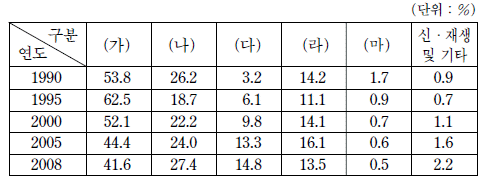 표는 우리나라의 1차 에너지 소비량 구성비를 나타낸 것이다. (가)~(마)에 대한 설명으로 옳지 않은 것은?[3점]