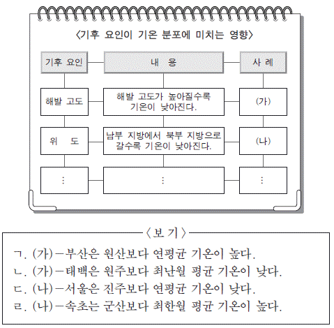 지도의 ㄱ~ㄷ 지역을 (가)에서 고른 것은?[3점]