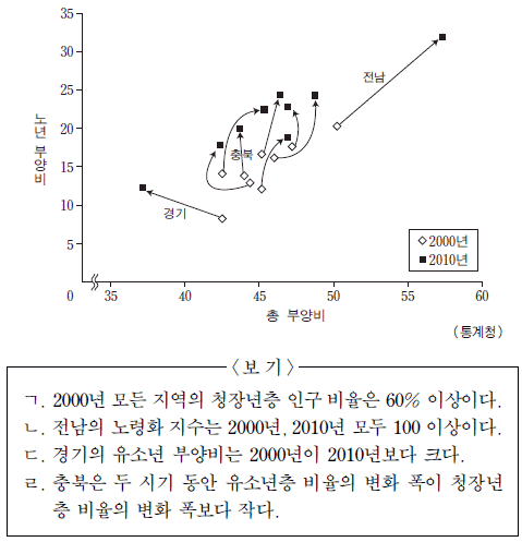 그래프는 각 도(道)별 인구 구조에 관한 것이다. 이에 대한 옳은 분석을 <보기>에서 고른 것은?