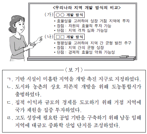 다음은 지역 개발 방식에 대한 수업 장면이다. (가)와 비교할 때, (나)의 사례로 적절한 것을 <보기>에서 고른 것은?