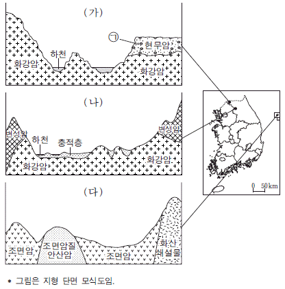 다음 자료의 (가)~(다) 지형에 대한 설명으로 옳지 않은 것은?[3점]
