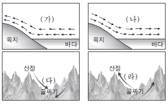 그림은 국지풍의 모식도이다. (가)~(라) 바람에 대한 설명으로 옳은 것은?[3점]