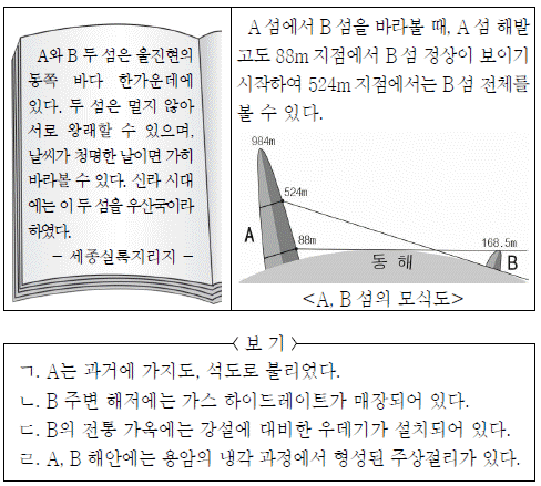 자료의 A, B섬에 대한 옳은 설명을 <보기>에서 고른 것은? [3점]