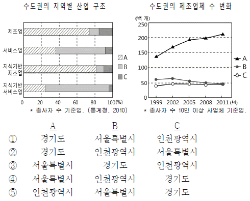 A~C 지역에 대한 설명으로 옳은 것은? (단, A~C의 중심지 계층은 서로 다름.)