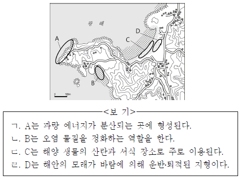 지도의 A∼D에 대한 옳은 설명을 <보기>에서 고른 것은? [3점]