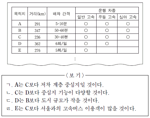 표는 서울 강남 고속버스 터미널의 호남선 운행 현황을 나타낸 것이다. 이에 대한 추론으로 적절한 것을 <보기>에서 고른 것은? [3점]