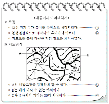다음 자료는 대동여지도에 대한 노트 필기의 일부이다. (ㄱ) ∼ (ㄹ) 중 옳은 내용을 고른 것은?