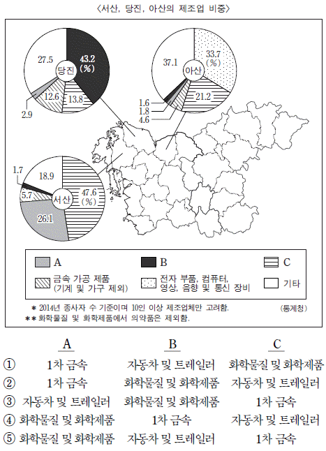 다음 자료의 A~C에 해당하는 업종으로 옳은 것은? [3점]