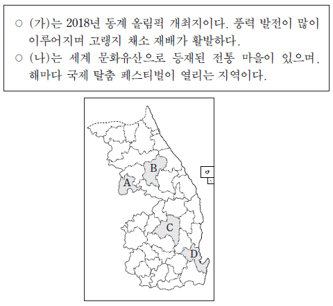 다음 글의 (가), (나) 지역을 지도의 A~D에서 고른 것은?