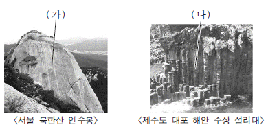 그림의 (가), (나) 암석에 대한 설명으로 옳은 것은?[3점]