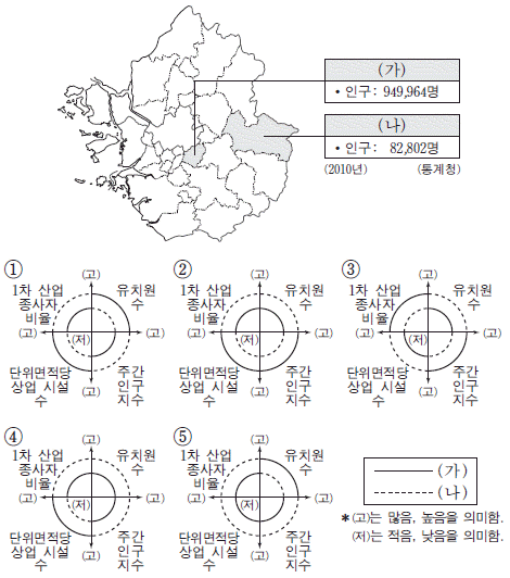 (가), (나) 지역의 상대적 특성으로 옳은 것은?