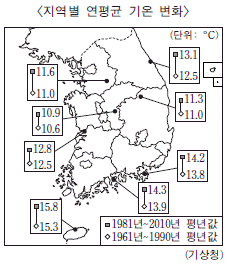지도에 나타난 변화가 지속될 때 우리나라에서 일어날 수 있는 현상에 대한 추론으로 가장 적절한 것은? [3점]