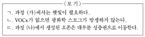 그림은 광화학 스모그를 일으키는 광화학 산화물의 생성 과정을 나타낸 것이다.