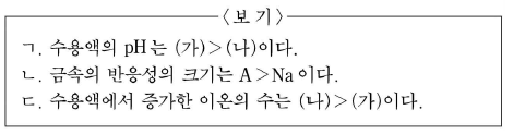 이 실험 결과에 대한 설명으로 옳은 것을 <보기>에서 모두 고른 것은? (단, 사용한 Na의 질량은 같다.) [3점]