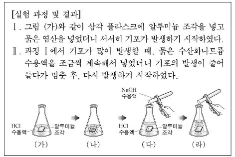 다음은 알루미늄의 성질을 알아보기 위한 실험이다.
