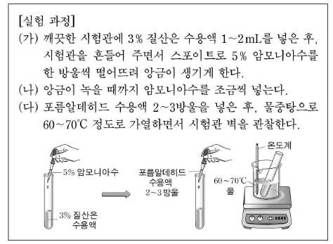 다음은 은거울 반응 실험을 나타낸 것이다.