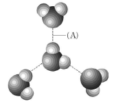 그림은 물 분자 사이의 결합을 나타낸 것이다.