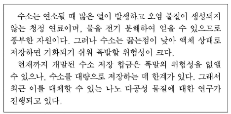 위의 내용으로 볼 때, 연구가 진행 중인 수소 저장 물질이 가져야 할 특성으로 가장 적당한 것은?