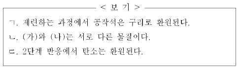 다음은 구리 광석인 공작석(CuCO3)을 제련하여 구리를 얻는 과정이다.