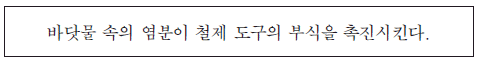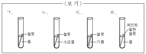 [과목 구분 없음] 영희는 바닷물 속에서 사용하는 철제 도구의 부식이 빠르다는 이야기를 듣고, 그 이유를 알아보기 위하여 다음과 같은 가설을 세웠다.