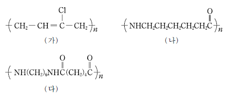다음은 세 가지 고분자 화합물의 구조식을 나타낸 것이다.