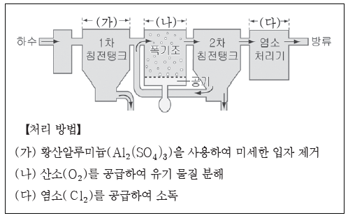 [과목 구분 없음] 다음은 어느 지역에서 사용되고 있는 하수 처리 과정에 관한 자료이다.