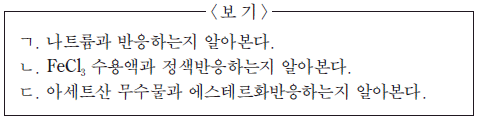 두 생성물을 구분하는 실험으로 옳은 것만을 <보기>에서 있는 대로 고른 것은? [3점]