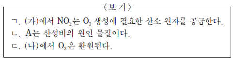 그림은 광화학 스모그와 관련된 반응과정의 일부를 나타낸 것이다.