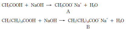 다음은 아세트산과 지방산을 각각 수산화나트륨과 반응시켰을 때의 화학반응식이다.