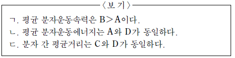 기체 A~D에 대한 설명으로 옳은 것은?