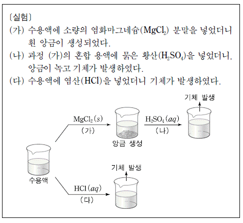 다음은 불꽃반응에서 노란색을 나타내는 어떤 수용액의 성질을 알아보는 실험이다.