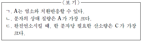 탄화수소 A, B, C에 대한 설명으로 옳은 것만을 <보기>에서 있는 대로 고른 것은? [3점]