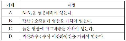 표는 기체 A~D의 제법이다.