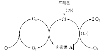 그림은 성층권에서 일어나는 기체 반응의 일부를 나타낸 것이다.