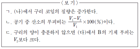 다음은 철수가 공기 중 산소의 부피비를 알아보기 위하여 수행한 실험이다.