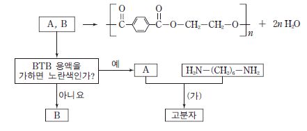 그림은 폴리에스테르의 단위체 A, B와 관련된 반응을 나타낸 것이다.