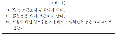 이에 대한 설명으로 옳은 것만을 <보기>에서 있는 대로 고른 것은? (단, X는 할로겐 원소이다.) [3점]