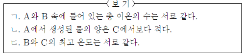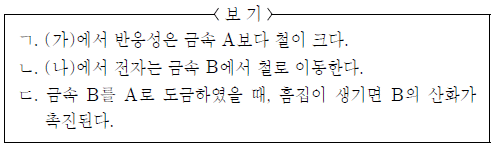 이에 대한 설명으로 옳은 것만을 <보기>에서 있는 대로 고른 것은? (단, A, B는 임의의 금속 원소이다.) [3점]