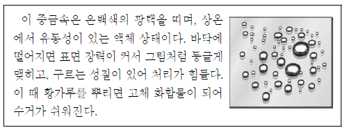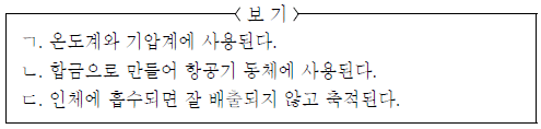 이 중금속에 대한 설명으로 옳은 것만을 <보기>에서 있는 대로 고른 것은?