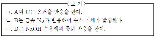 탄소 화합물 A∼D에 대한 설명으로 옳은 것만을 <보기>에서 있는 대로 고른 것은? [3점]