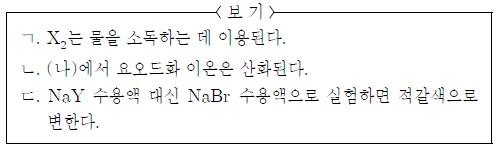 이에 대한 설명으로 옳은 것만을 <보기>에서 있는 대로 고른 것은? (단, X, Y는 임의의 할로겐 원소이다.) [3점]