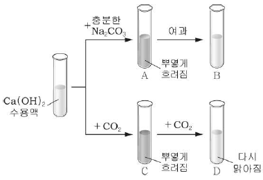 다음은 수산화칼슘(Ca(OH)2) 수용액을 이용한 실험이다.