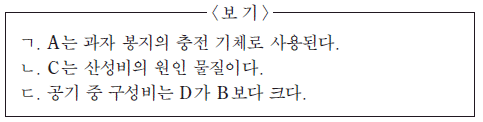 A~D에 대한 설명으로 옳은 것만을 <보기>에서 있는 대로 고른 것은?
