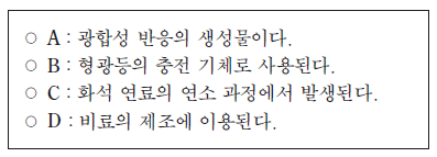 [과목 구분 없음] 다음은 공기의 성분 기체 A~D에 관한 설명이다. A~D는 각각 질소, 산소, 이산화탄소, 아르곤 중 하나이다.