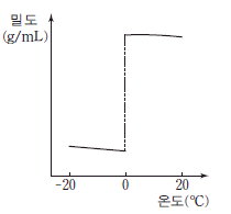 [과목 구분 없음] 그림은 온도에 따른 물의 밀도를 나타낸 것이다.