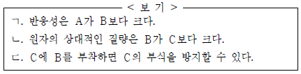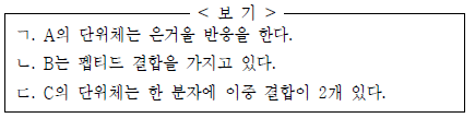 이에 대한 옳은 설명만을 <보기>에서 있는 대로 고른 것은? (단, A, B, C는 임의의 금속 원소이며, C이온은 +2가이다.) [3점]
