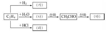 그림은 에텐(C2H4)과 관련된 반응을 나타낸 것이다.